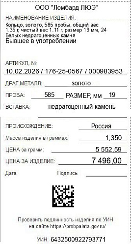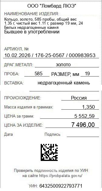 Цена за грамм общего веса: 5552.59Цена за грамм чистого веса: 6753.15Организация: ООО "Ломбард ЛЮЭ"Металл: золотоПроба: 585Артикул: 10.02.2026 / 176-25-0567 / 000983953Базовая единица: шт