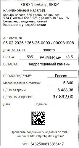 Цена за грамм общего веса: 6488.36Цена за грамм чистого веса: 6854.56Организация: ООО "Ломбард ЛЮЭ"Металл: золотоПроба: 585Артикул: 05.02.2026 / 266-25-0099 / 000981908Базовая единица: шт