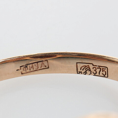 Кольцо золото 375, общий вес - 3.3 г, чистый вес - 1.611 г