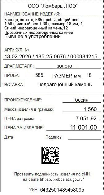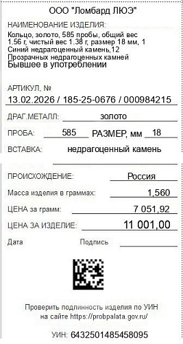 Цена за грамм общего веса: 7051.92Цена за грамм чистого веса: 7971.74Организация: ООО "Ломбард ЛЮЭ"Металл: золотоПроба: 585Артикул: 13.02.2026 / 185-25-0676 / 000984215Базовая единица: шт