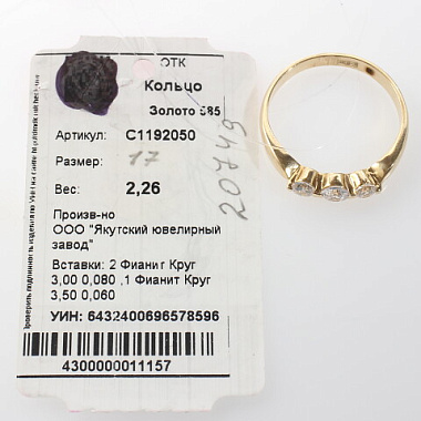 Кольцо золото 585, общий вес - 2.26 г, чистый вес - 2.105 г