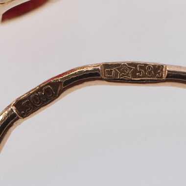 Глубина ушка, мм: 8Вид замка: ФранцузскийВставки: ДаШирина, мм: 6Клеймо: ДаСостояние: бывший в употреблении