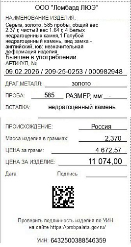 Цена за грамм общего веса: 4672.57Цена за грамм чистого веса: 6752.44Организация: ООО "Ломбард ЛЮЭ"Металл: золотоПроба: 585Артикул: 09.02.2026 / 209-25-0253 / 000982948Базовая единица: шт