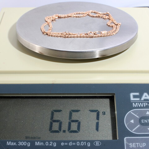Цепь золото 585, общий вес - 6.67 г, чистый вес - 6.67 г, 45 см
