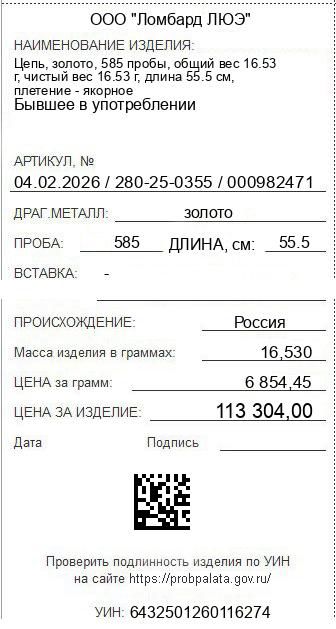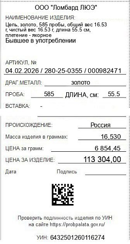 Цена за грамм общего веса: 6854.45Цена за грамм чистого веса: 6854.45Организация: ООО "Ломбард ЛЮЭ"Металл: золотоПроба: 585Артикул: 04.02.2026 / 280-25-0355 / 000982471Базовая единица: шт