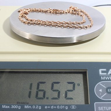 Цепь золото 585, общий вес - 16.53 г, чистый вес - 16.53 г, 55.5 см